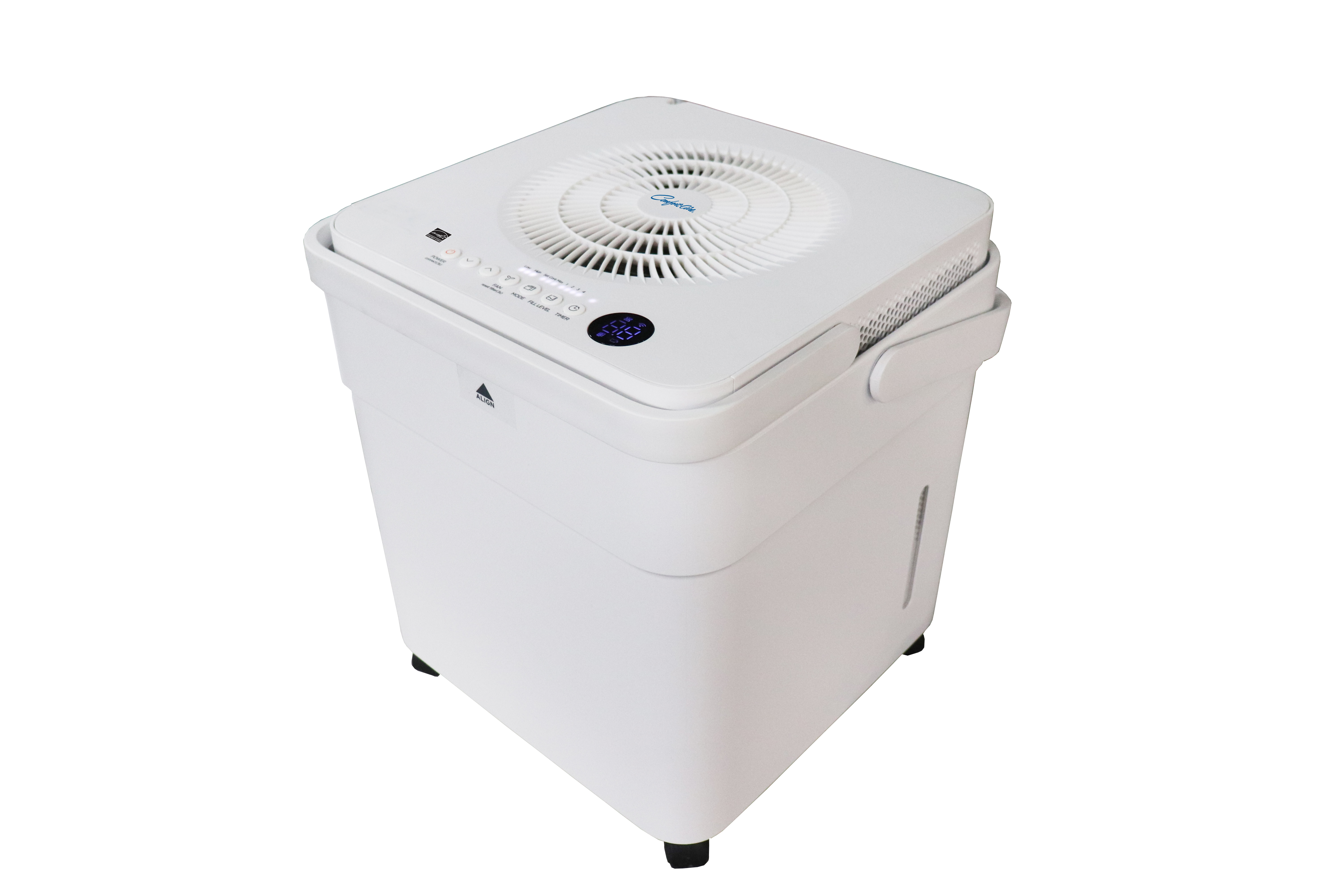 Portable Cube dehumidifier has condensate bucket that can be accessed from the top, or direct drain option may be used. 50 pts per day